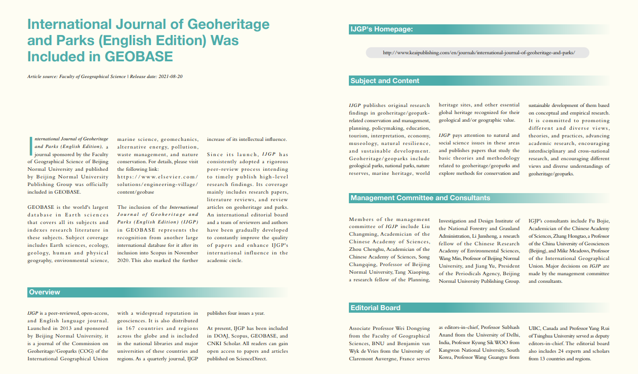 International Journal of Geoheritage and Parks (English Edition) Was Included in GEOBASE