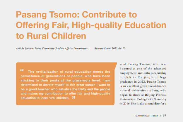 Pasang Tsomo: Contribute to Offering Fair, High-quality Education to Rural Children