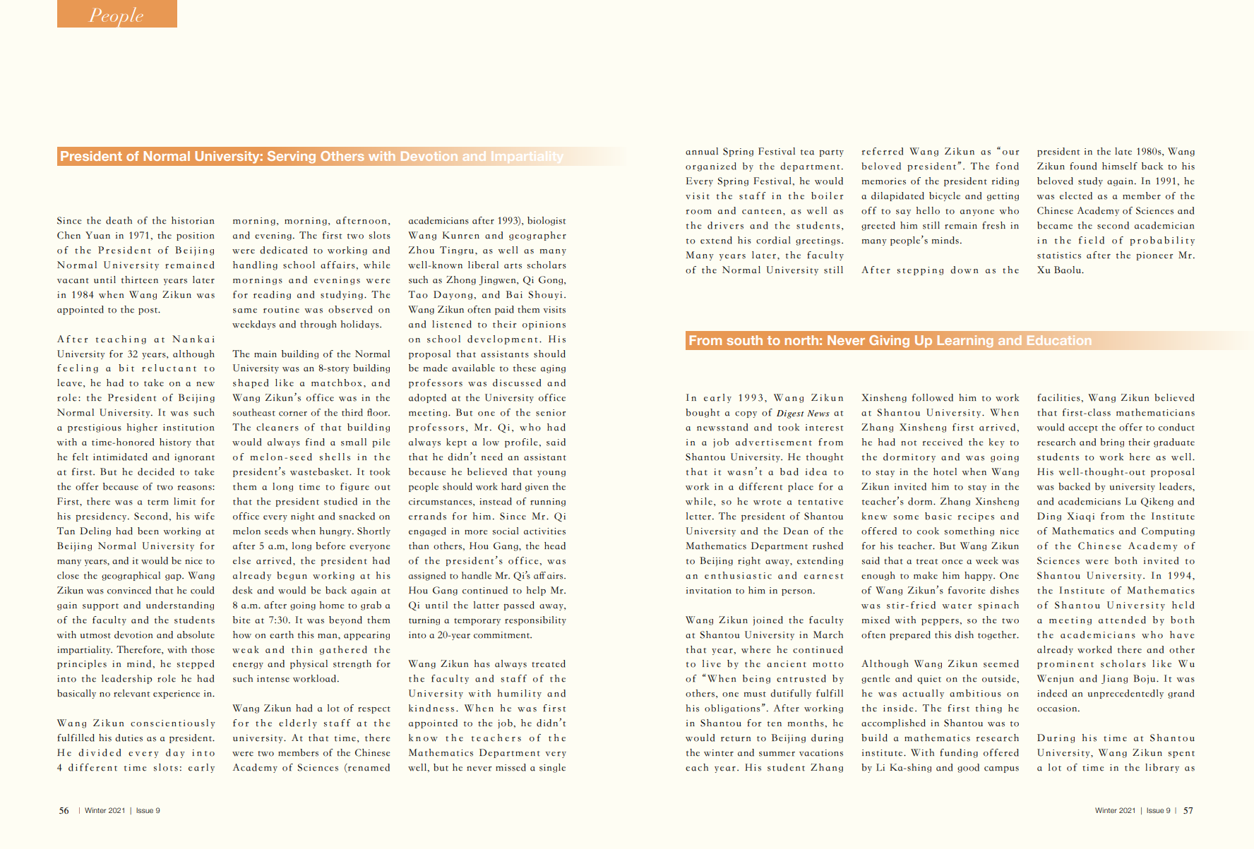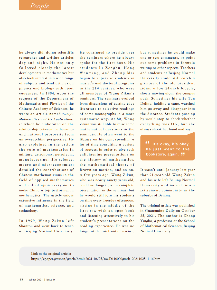 Professor Wang Zikun, Our Beloved President