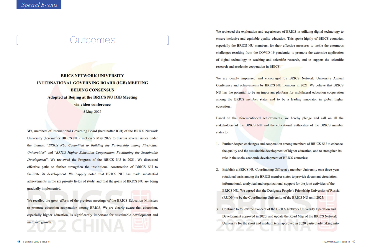 2022 BRICS NETWORK UNIVERSITY ANNUAL CONFERENCE & 2022 BRICS NETWORK UNIVERSITY INTERNATIONAL GOVERNING BOARD MEETING