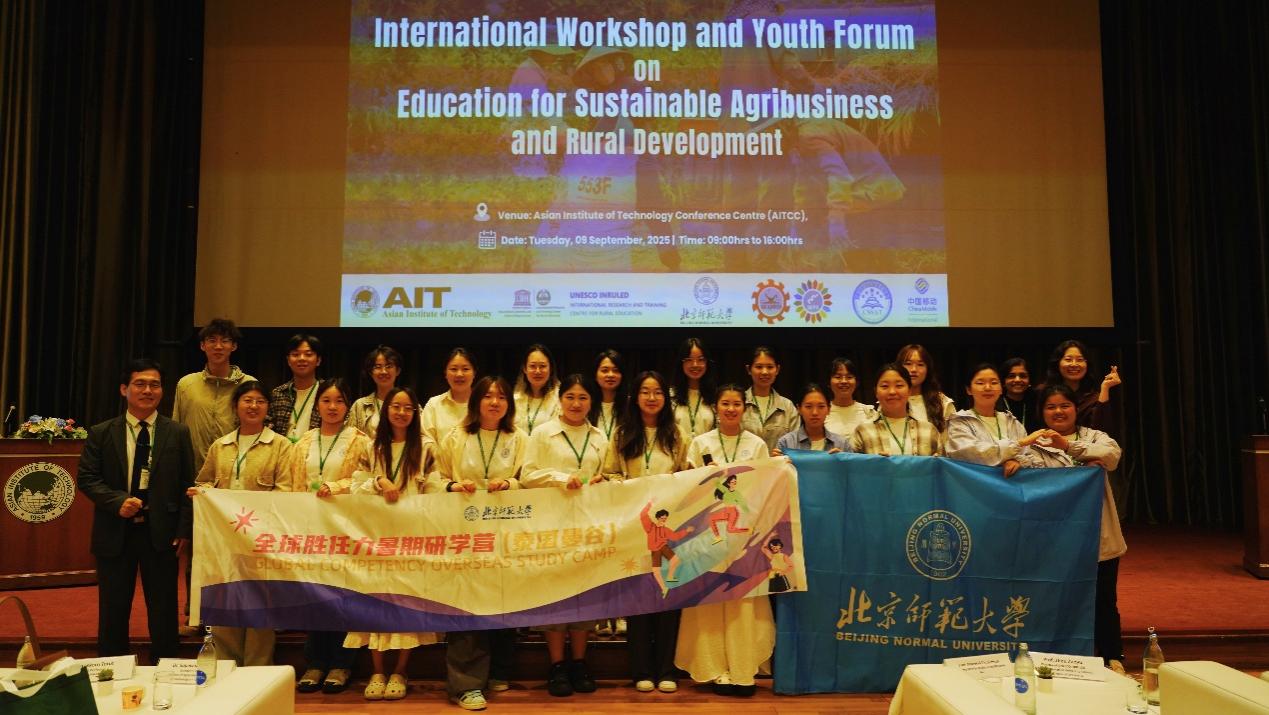 研学次日,学员们参加“教育促进农业经济和农村可持续发展”国际培训班暨青年论坛。会上,来自泰国农业部、亚洲理工学院、东南亚教育部长组织适度经济哲学区域中心(SEAMEO SEPS)和农教中心等机构的专家系统阐释了亚太地区农业政策与可持续发展战略。下午,学员们观摩了泰国高校青年团队的创新项目展示,涵盖废弃物资源化、人工智能农业协作和农光互补等前沿领域,并与来自不同国家的青年研究者就气候智慧型农业与农村韧性建设展开交流,进一步认识到区域合作在推动绿色农业转型中的重要作用。