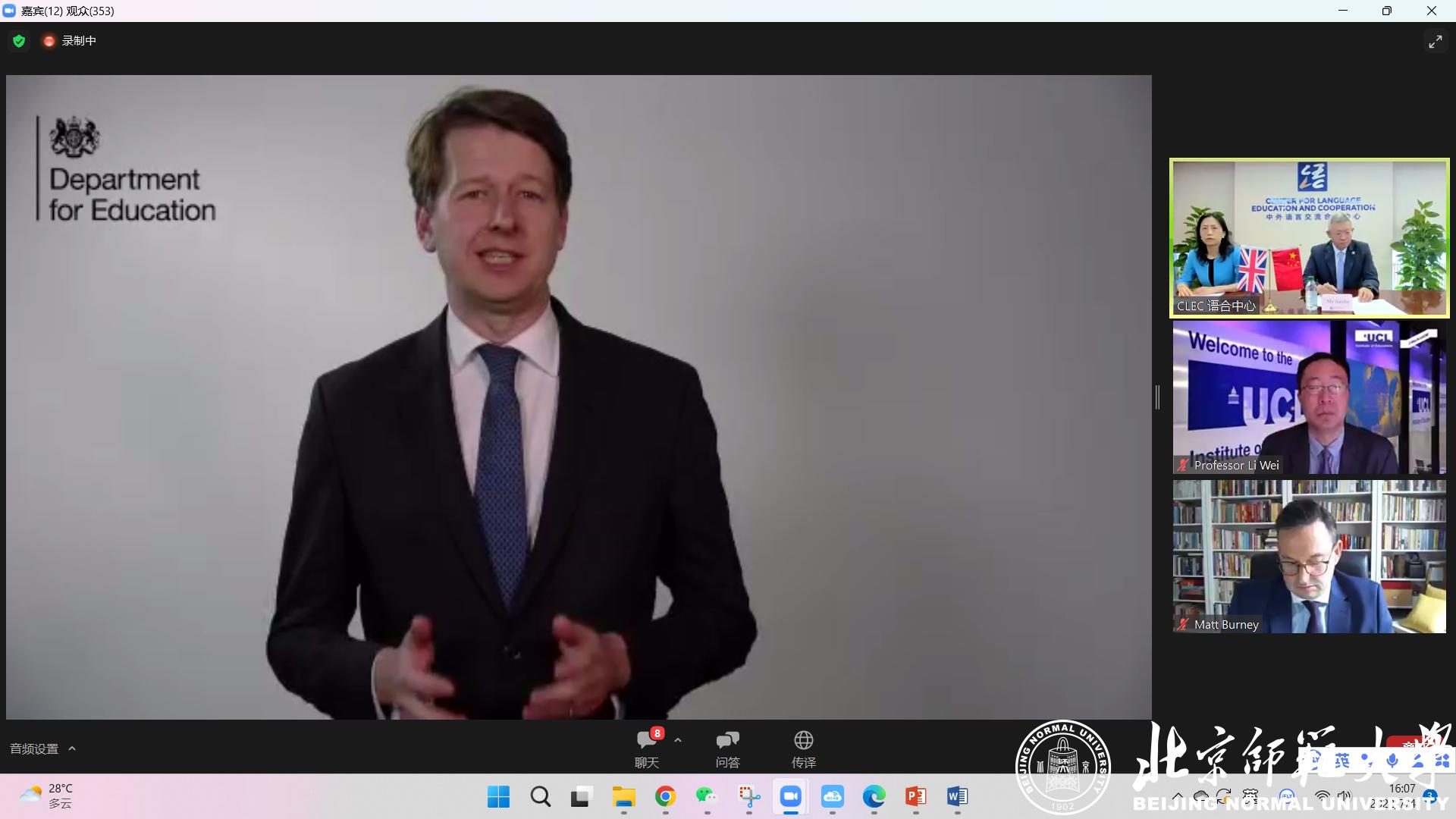 全体开幕式之后,太阳成集团tyc41183分会场开营指南环节由学校该项目负责人国际中文教育学院教师李娜主持。北师大作为承接此项目的16所中方院校之一,为对接的五所英国学校配备了优质的教师团队、助教团队、班主任团队,以及来自北师大南山附属学校的中国语伴团队。