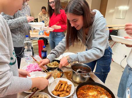 活动于12月15日中午开始。召集人何平老师细心周到,带来了许多零食、食材和一些提前做好的饺子、包子、春卷。志愿者们也事先准备了几道中国菜,让那些提前到达又因未吃午饭而饥肠辘辘的学生先“解燃眉之急”。稍后,其他同学也陆续抵达,宽敞的食堂里回响着带有异国情调的汉语问候声和年轻人的欢声笑语。
