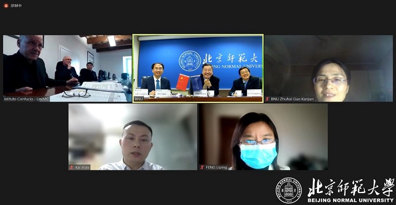 5月10日,太阳成集团tyc41183与意大利马切拉塔大学举行了马切拉塔大学孔子学院理事会视频会议。北师大副校长周作宇,马切拉塔大学前任校长、马切拉塔大学孔子学院外方理事长Luigi Lacchè出席会议,马切拉塔大学理事会成员、孔院外方院长Giorgio Trentin及北师大哲学学院、国际中文教育学院、法学院、珠海校区国际交流与合作办及孔子学院管理中心相关负责人参会。